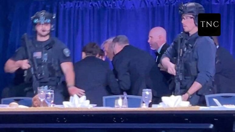 Gunshots rang out at approximately 8:35 PM local time on Saturday in the hotel foyer, one floor below the ballroom where hundreds of guests had gathered for the event. The president, First Lady Melania Trump and Vice-President JD Vance were rushed out of the ballroom by Secret Service agents within moments of the incident unfolding.